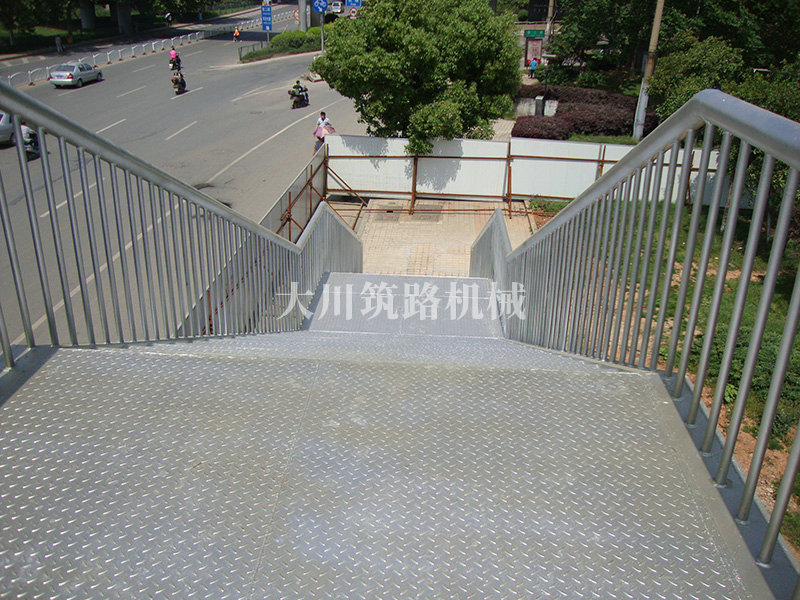 特點:本鋼橋主梁采用標準的“321鋼橋”現(xiàn)場安裝并用朔板包邊,梯道用型鋼、鋼板在廠內(nèi)加工好現(xiàn)場拼裝,達到安裝便捷、美觀、舒適的要求。本鋼橋安裝工期緊,安裝條件有限,大都只能得用晚間在封鎖交通的情況下安裝。